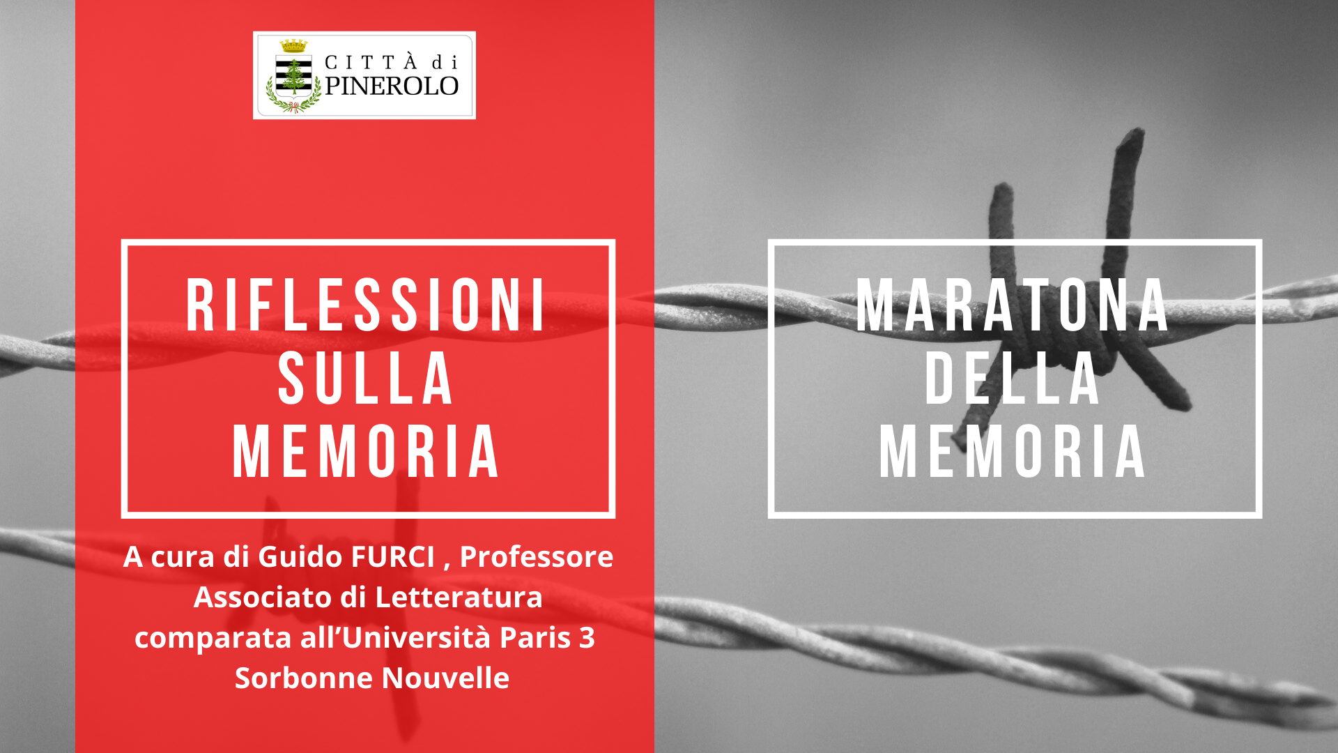 In occasione del Giorno della Memoria mercoledì 27 gennaio 2021 il Comune di Pinerolo commemora le vittime della Shoah con una “Maratona della memoria” online sulla pagina Facebook istituzionale della Città di Pinerolo.- ore 12,00 Riflessioni sulla Memoria. Contributo del dott. Guido FURCI , Professore Associato di Letteratura comparata all’Università Paris 3 – Sorbonne Nouvelle (Paris Sorbonne Cité)