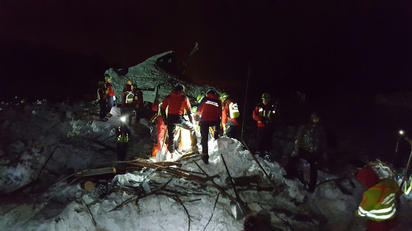 «Abbiamo lavorato in condizioni ambientali difficili - ha riportato Matteo Gasparini, responsabile del contingente del CNSAS Piemonte – a causa della pioggia frammista a neve che continua a scendere in zona. Scavare a mano nella neve è un’impresa faticosissima poiché con le pale si urtano continuamente tronchi e calcinacci, ma è l’unico modo per consentire alle benne di raggiungere le pareti dell’albergo. Da oggi, il lavoro congiunto di uomini e mezzi consentirà di aprire varchi più ampi e profondi nella struttura».