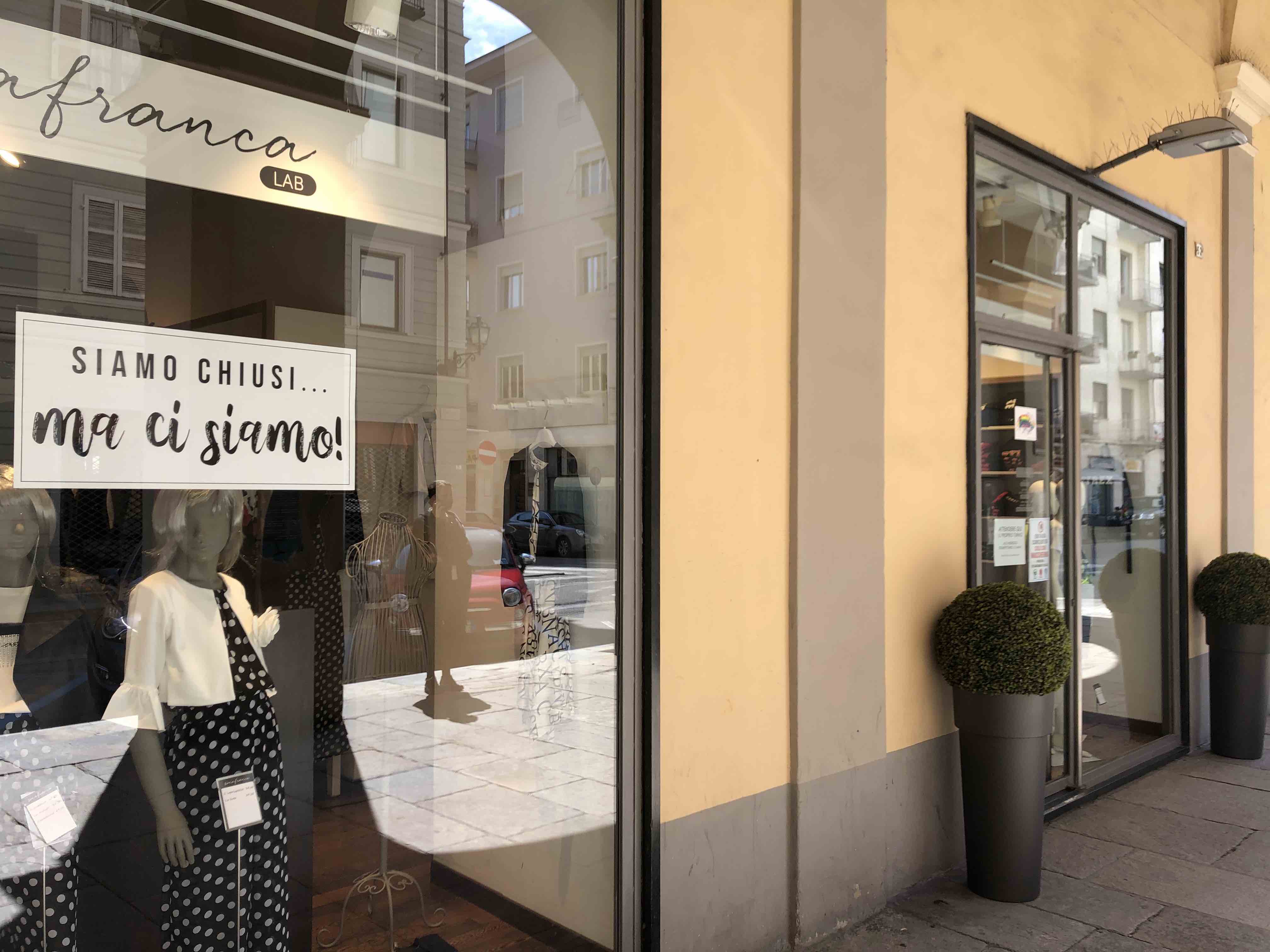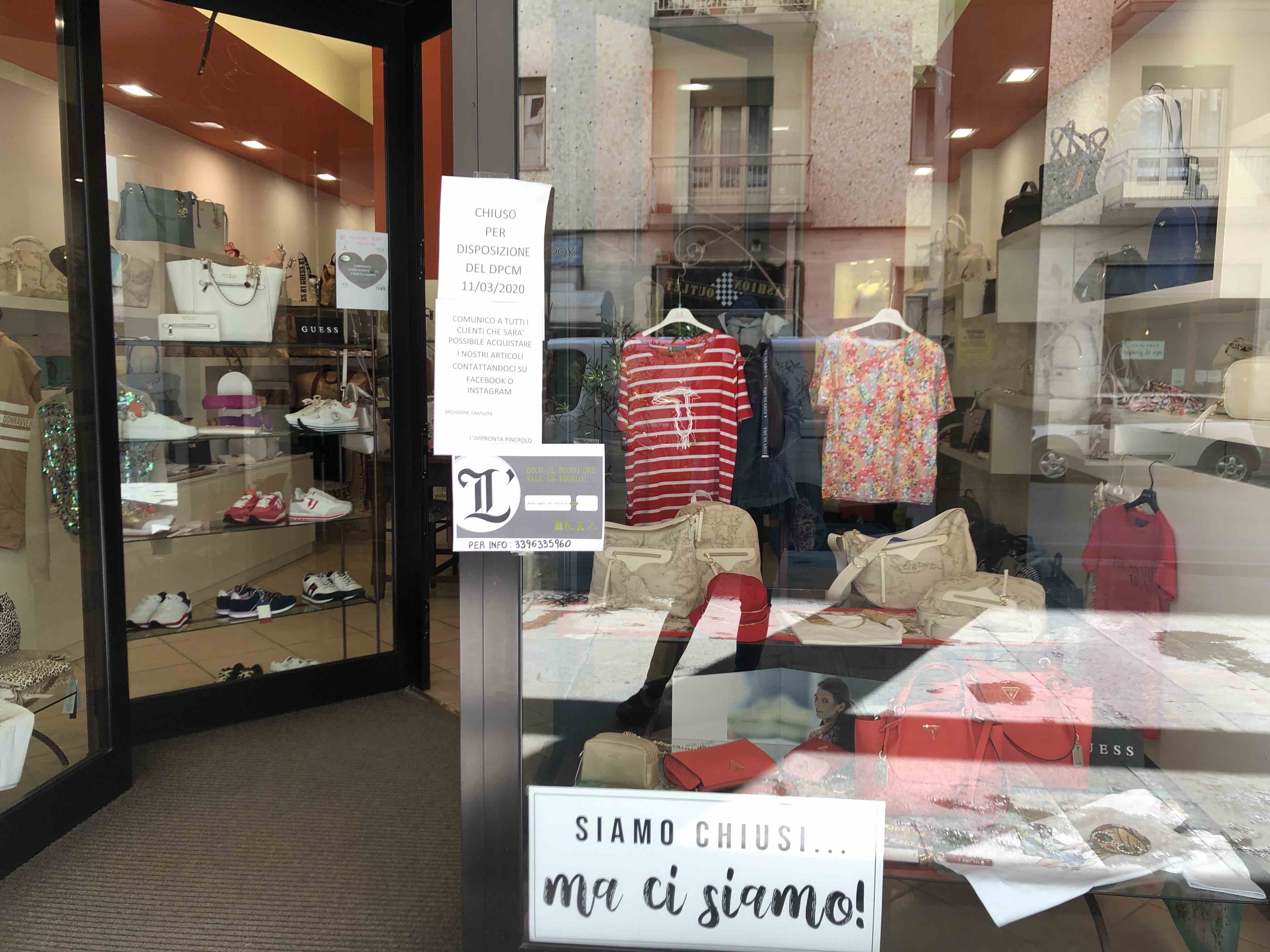 Questa mattina i commercianti di Pinerolo hanno attaccato sulle vetrine dei loro negozi dei cartelli con la scritta “Siamo chiusi… ma ci siamo!”. Poi dalle 11 alle 12 ognuno è andato davanti al proprio negozio, aprendolo ed accendendo le luci. Un flash mob, nato dall’idea di alcuni commercianti di Pinerolo, con l’obiettivo di chiedere una riapertura il prima possibile di tutte le attività. Una protesta ma anche un gesto di orgoglio per tutti quei commercianti che da settimane sono costretti a tenere le serrande abbassate.