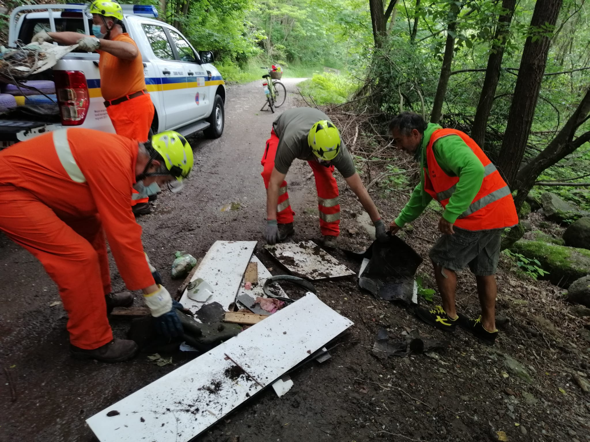Con il contributo della Protezione Civile sabato scorso sono state sgomberate alcune discariche abusive nel tratto tra il ponte Blancio e Bertenga, a Torre Pellice.